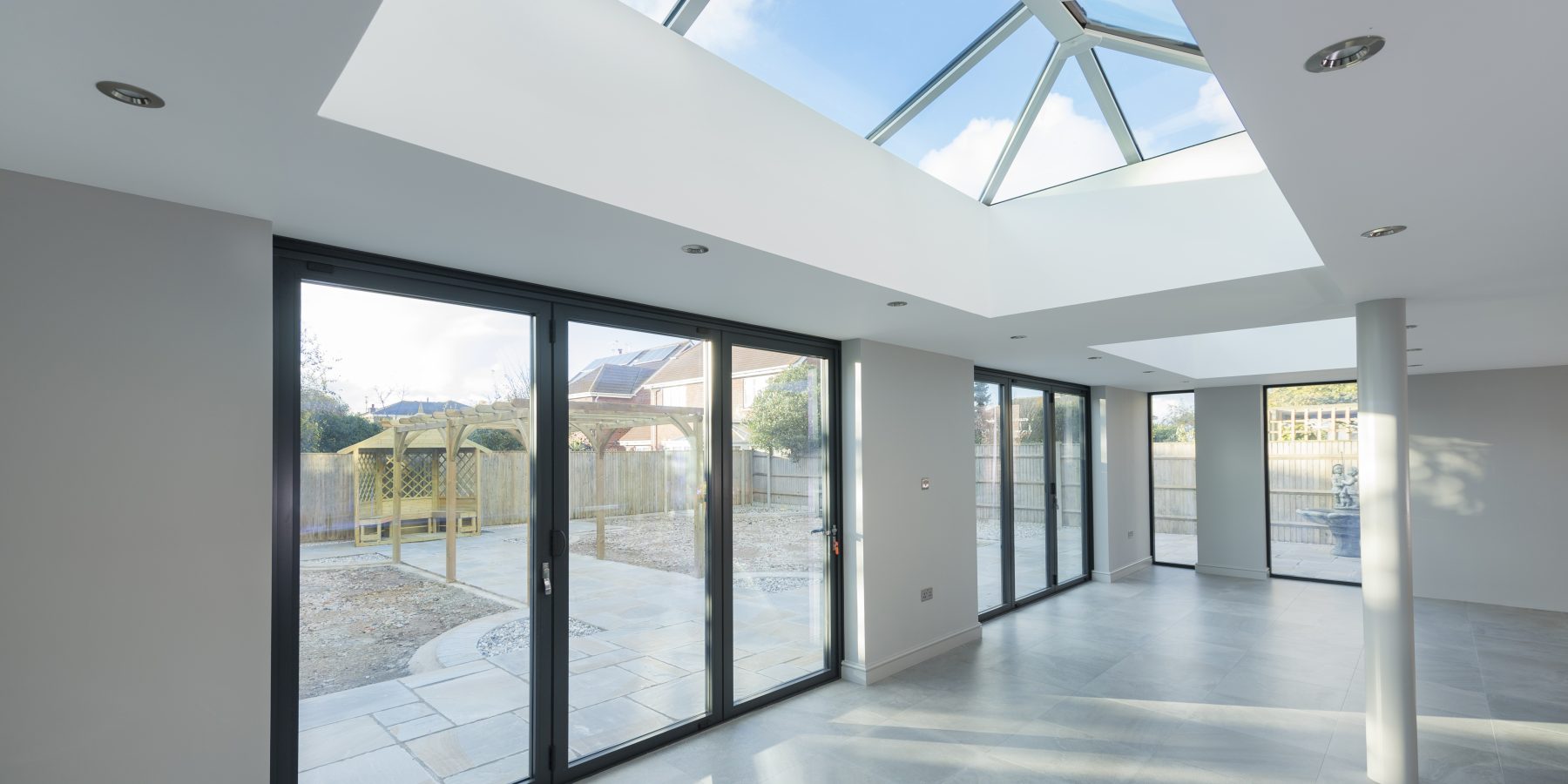Customisation in size, configuration and colour — adaptable to various extension and orangery designs.